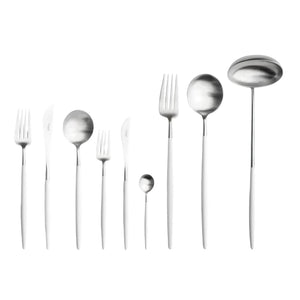 Discover the variety of cutlery we offer. Coordinate and organize a kitchen with the aid of designer cutlery sets or canteens. From modern shapes to innovative colors and designer styles, store your best sets within a cutlery canteen to prevent tarnish, scratches and dust between uses. Perfect for ensuring a luxury table setting. With our wide collection you’ll find the ideal designer cutlery.